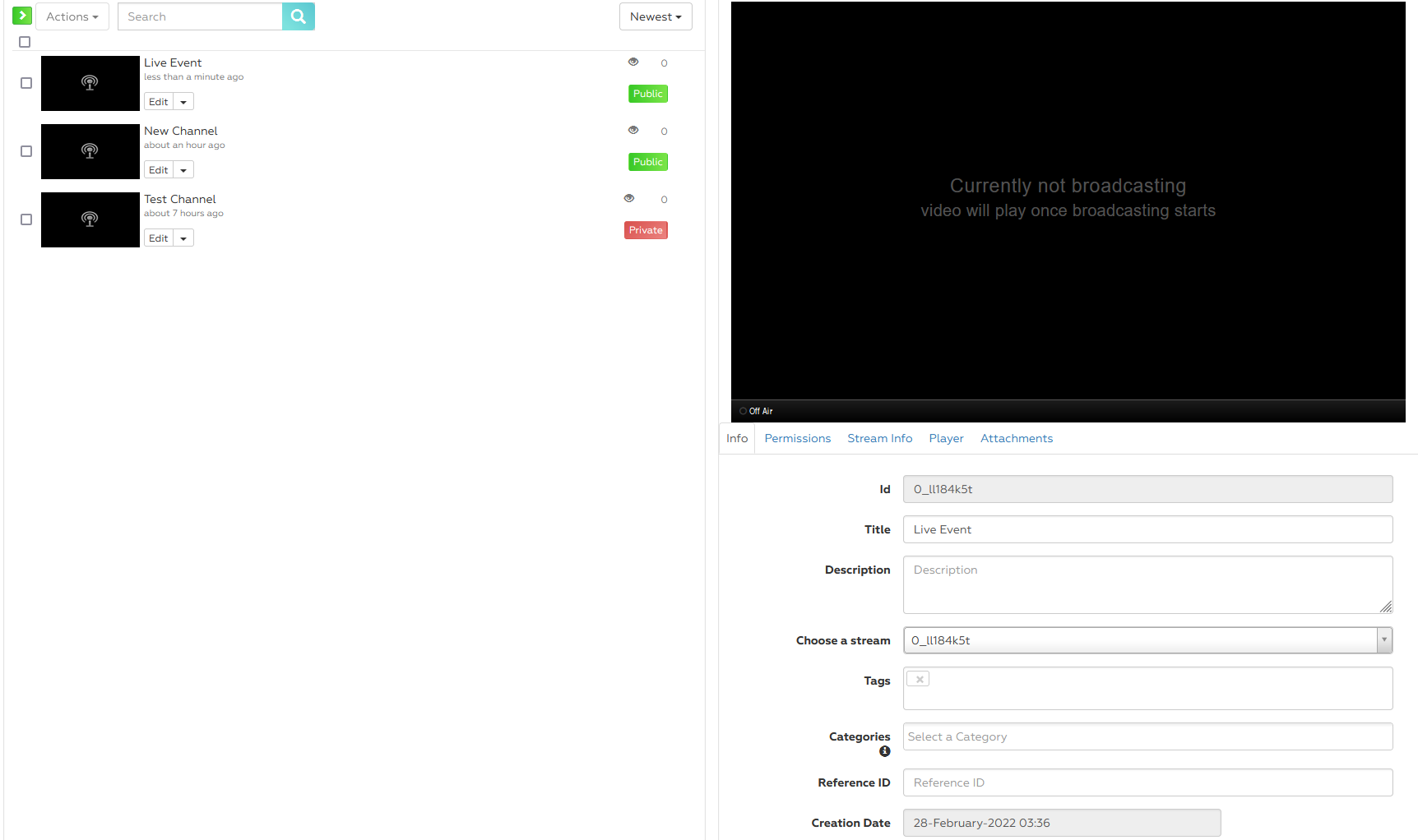 Once created, select the live event and edit its name, and details.